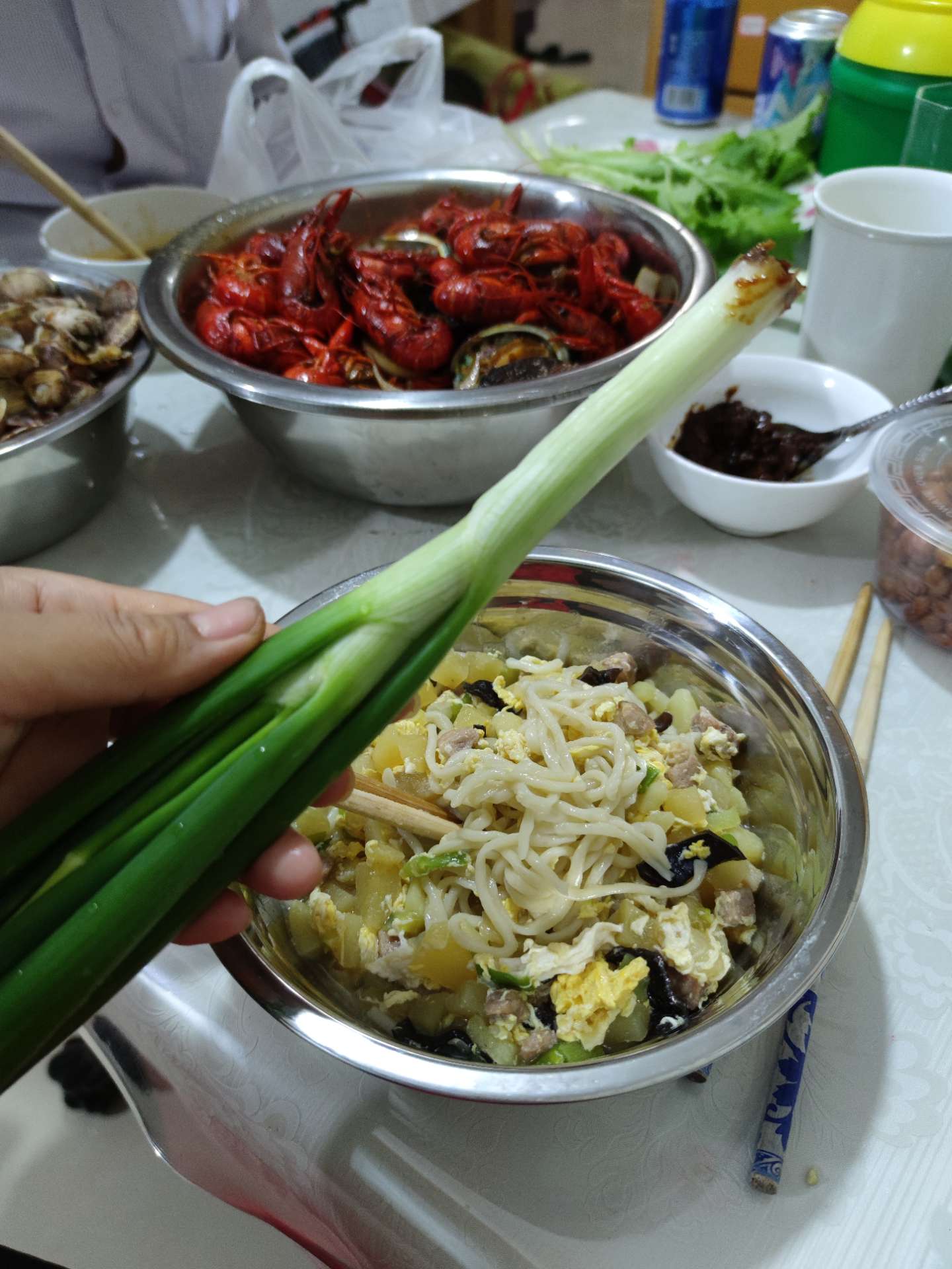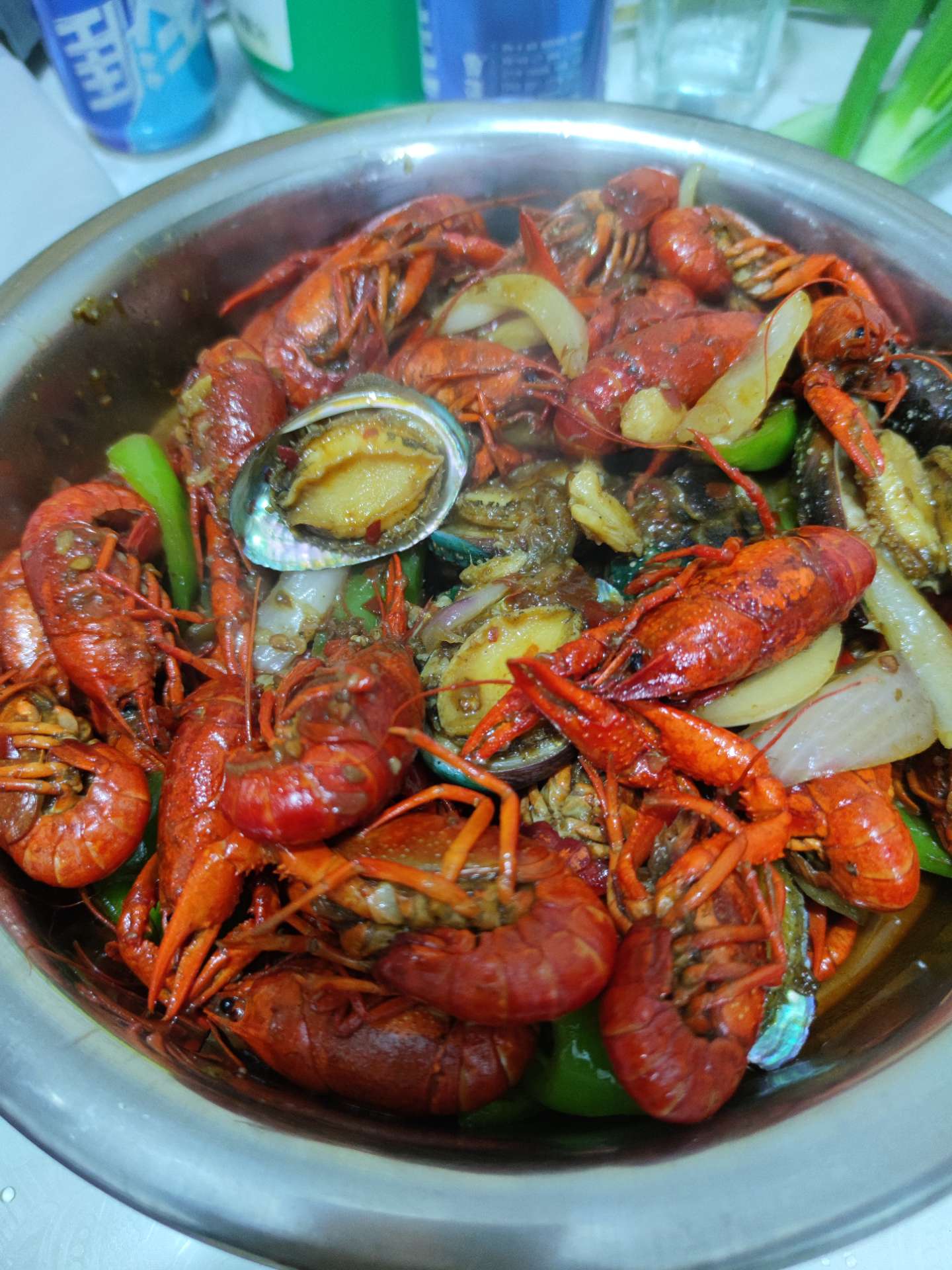 下午回来忙活完,老公馋小龙虾了,自己买回来让我做。以前吃那份调料买不到那个牌子了,换新的牌子。结果发现很好吃,不输以前的。老公特别高兴。我趁机揶揄他,我做的饭好吃还是他前女友做的好吃?他说前女友只给他煮过方便面。