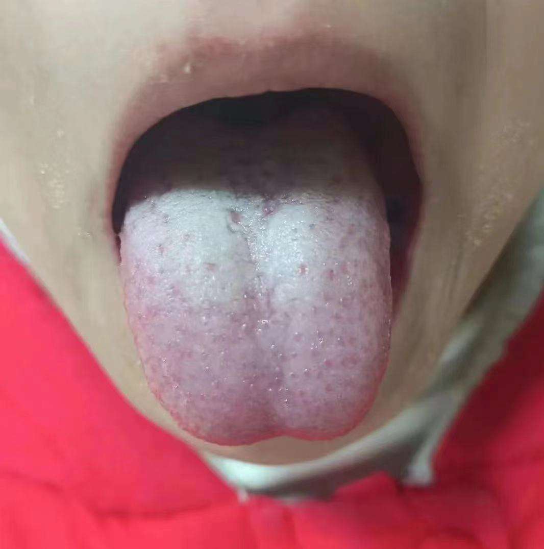 叶子老师分析完舌象,我来说一下搭配思路,这个孩子中焦脾胃虚弱导致了上热下寒的体质,所以中焦要通畅,小禆必用,下焦白腻苔,也是因为脾阳虚导致的,上焦有芒刺点,所以多有咳嗽或者容易感冒,肝胆区於滞点,多有情绪波动大的问题。