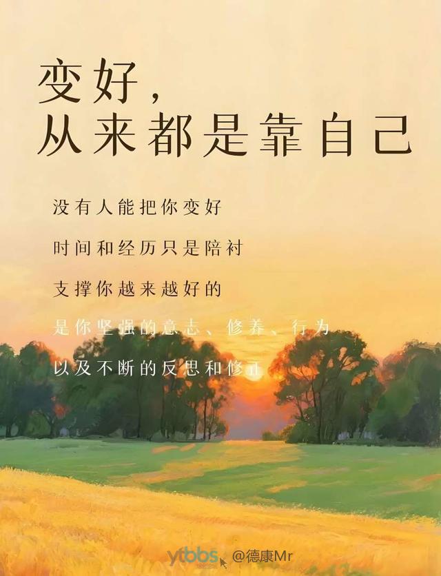 记住: 最好的伯乐是努力的自己。人生最可靠的安全感,从来不是别人的馈赠,而是自己的成长。从今天起,把更多时间拿来丰富自己。看过的书,会沉淀为你的气质;走过的路,会拓宽你的格局;见过的人,会教会你通透;给出的善,会回馈你温暖。你所有的付出,终会在时光里开花结果。