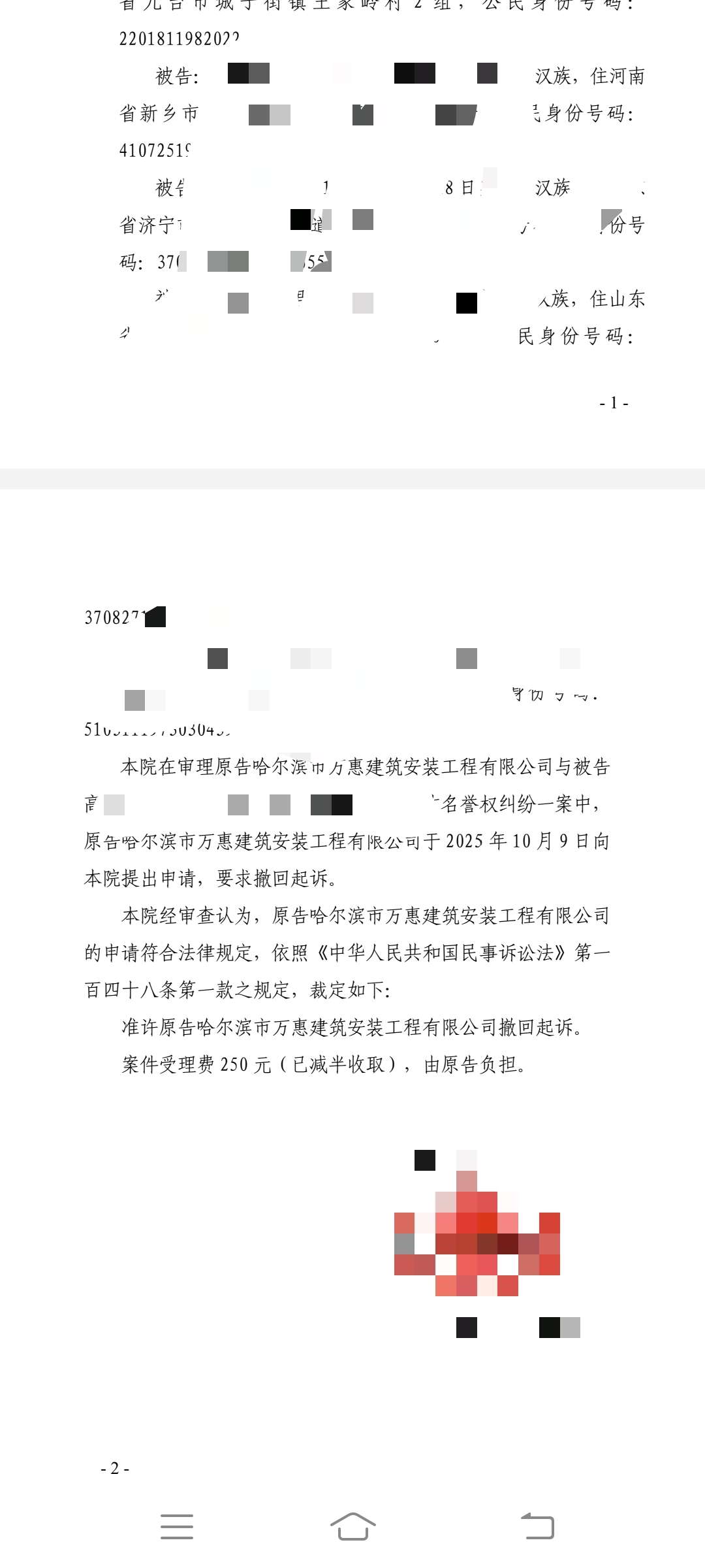 在我们正常讨薪期间,作为分包单位的哈尔滨万惠建筑劳务有限公司不仅不给解决问题,还一纸诉状把我父亲在内的几位农民工以侵犯名誉权的名义告上了法庭,要求赔偿给分包单位一万元,并登报道歉!这是多么荒唐的事情啊,他们拖欠农民工工资不给,还把农民工告上法庭,然后经过两次开庭,就是拖着让工人没办法通过其他渠道讨要工资,就是让这件事在诉讼程序,工人无法用其他渠道讨要工资,最后分包单位荒唐的做了撤诉处理。